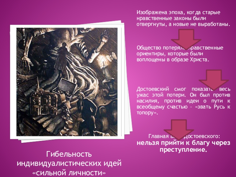 Теория Раскольникова выросла из разочарований молодого поколения после крушения революционной ситуации 60-х годов на почве кризиса утопических идей.