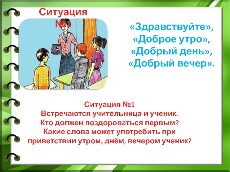 «Здравствуйте», «Доброе утро», «Добрый день», «Добрый вечер».