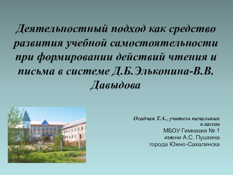 Деятельностный подход как средство развития учебной самостоятельности при формировании действий чтения и письма в системе Д.Б.Эльконина-В.В.Давыдова