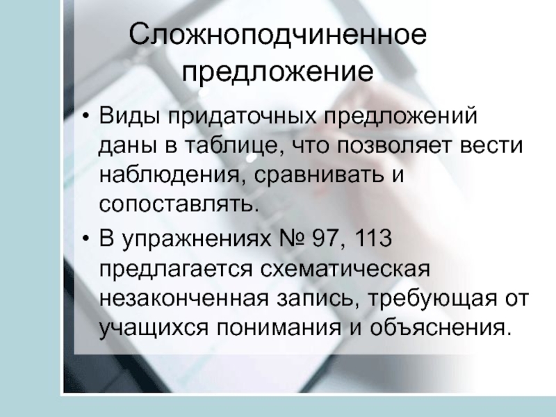Виды придаточных предложений даны в таблице, что позволяет вести