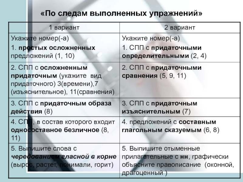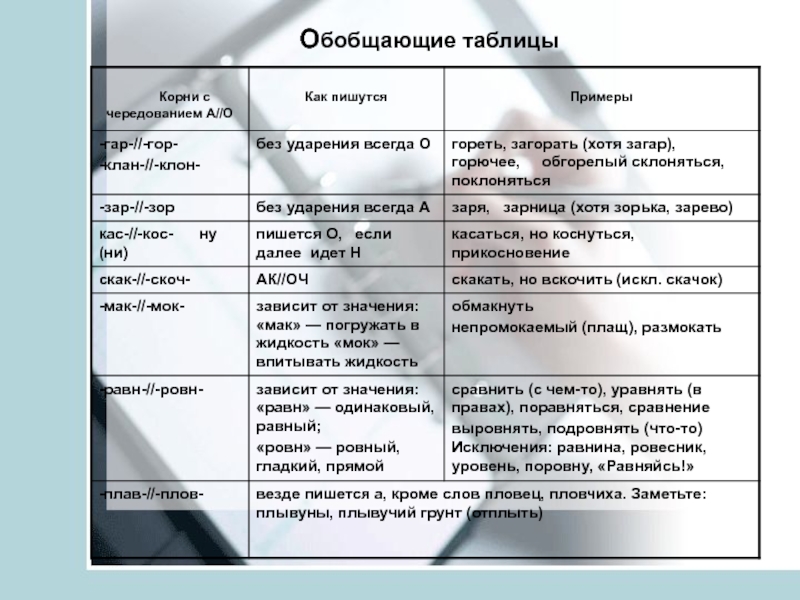При повторении используются обобщающие таблицы, схемы, сопровождающиеся вопросами, заданиями, тренировочными упражнениями.