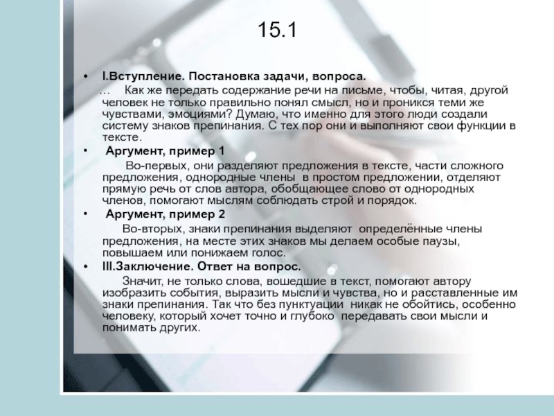 передать содержание речи на письме, чтобы, читая, другой человек не только правильно понял смысл, но и проникся теми же чувствами, эмоциями? Думаю, что именно для этого люди создали систему знаков препинания. С тех пор они и выполняют свои функции в тексте.