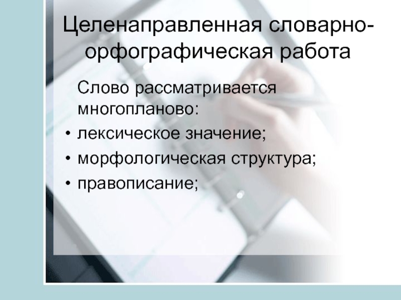 Слайд 15Целенаправленная словарно-орфографическая работа