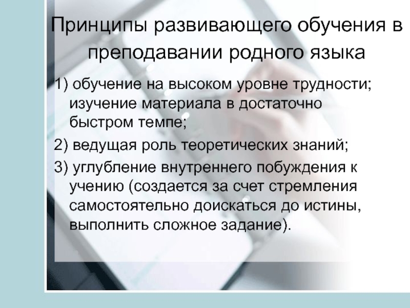 Слайд 4Принципы развивающего обучения в преподавании родного языка