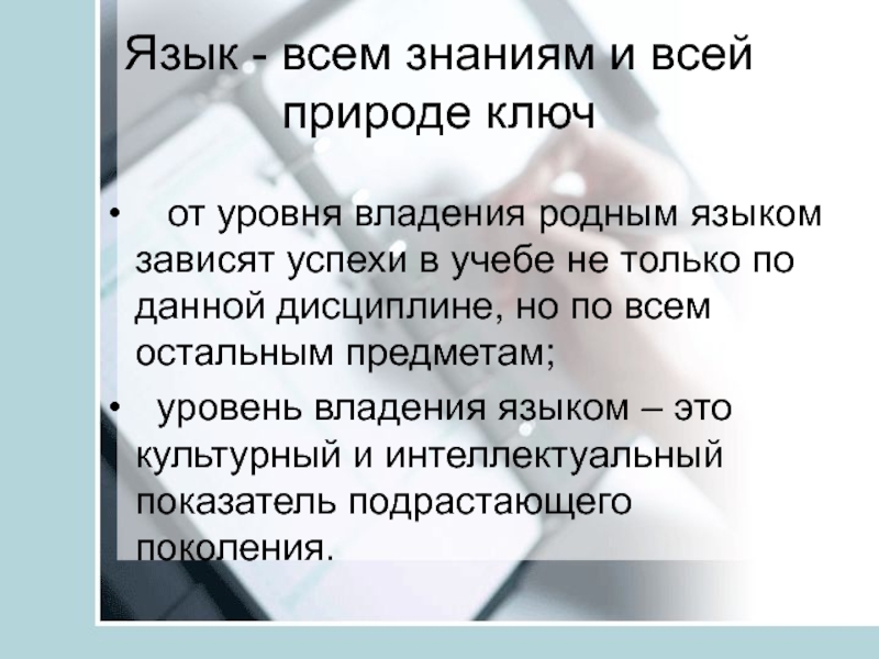 уровня владения родным языком зависят успехи в учебе не только по данной дисциплине, но по всем остальным предметам;