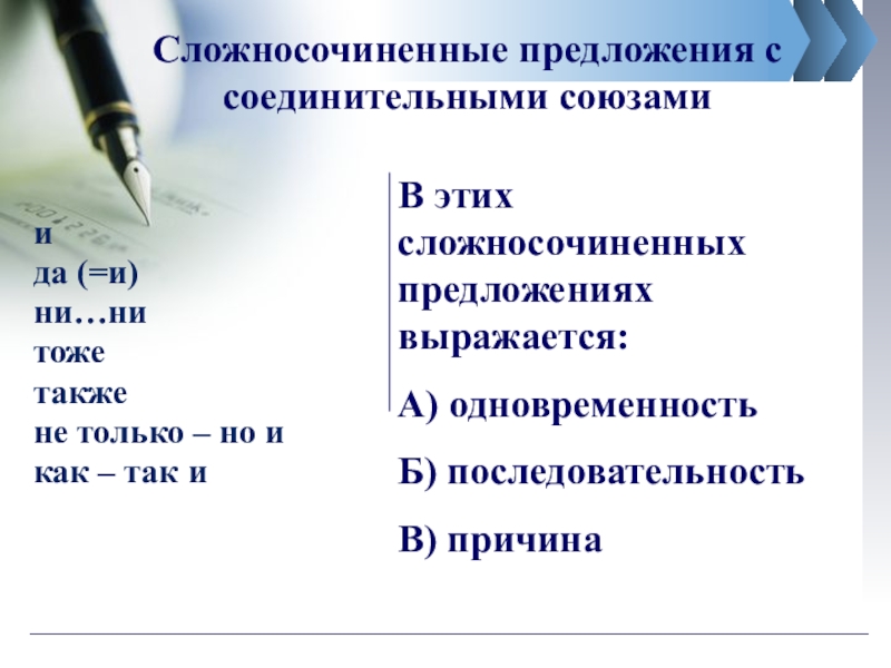 И, да(=и), ни-ни, а, но, да(=но), однако, либо, или(иль), тоже, также и др.