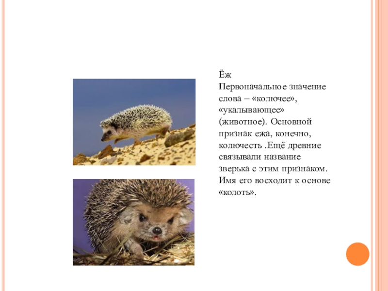 колючесть .Ещё древние связывали название зверька с этим признаком. Имя его восходит к основе «колоть».