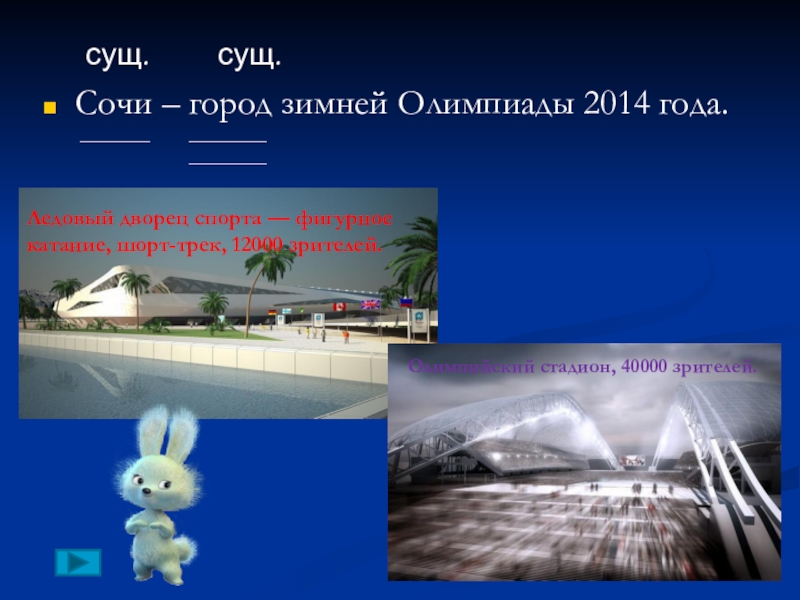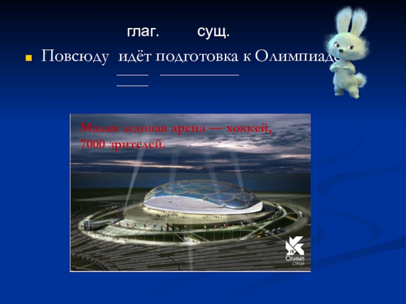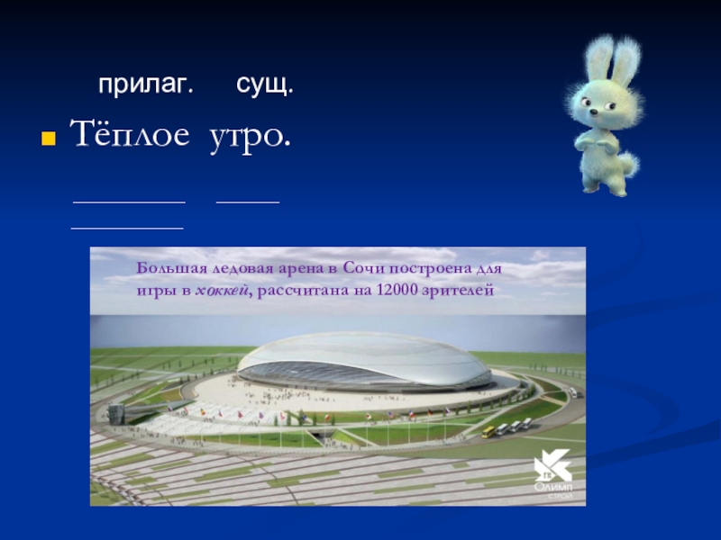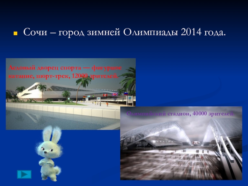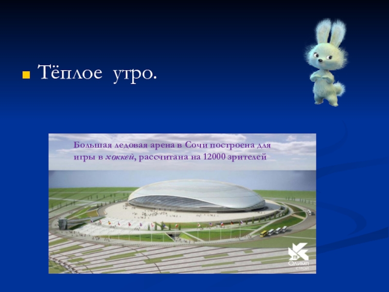 Большая ледовая арена в Сочи построена для игры в хоккей, рассчитана на 12000 зрителей