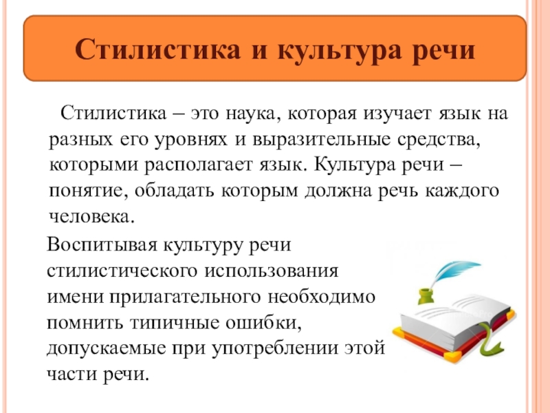 Воспитывая культуру речи стилистического использования имени прилагательного необходимо помнить типичные ошибки, допускаемые при употреблении этой части речи.