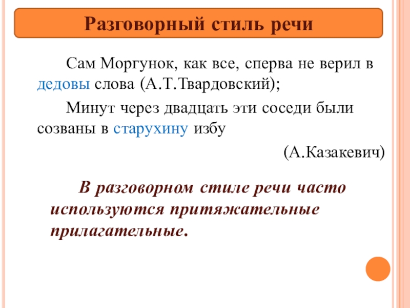В разговорном стиле речи часто используются притяжательные прилагательные.