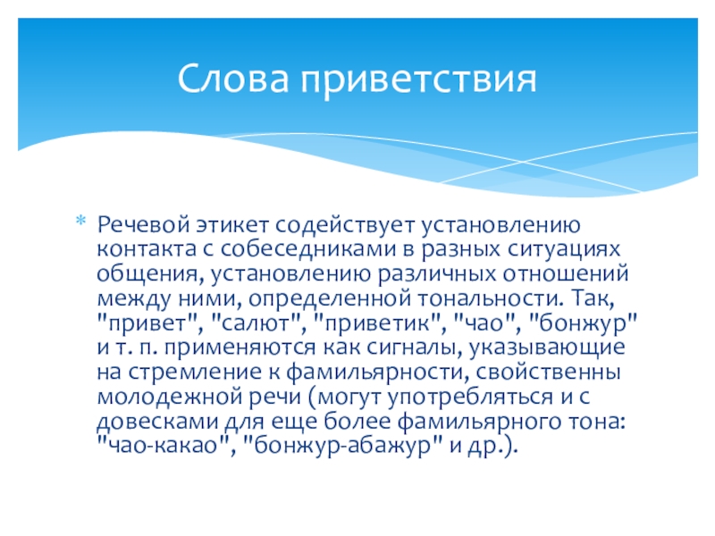 Особенности речевого этикета