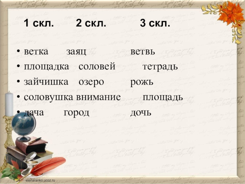 Ветвь, ветка, площадь, площадка, заяц, зайчишка, соловей, соловушка,