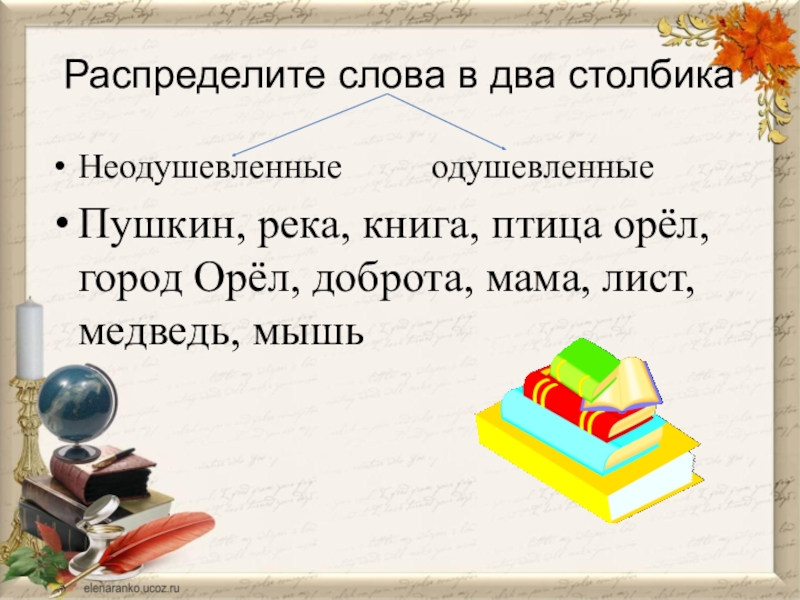 Слайд 14Имена существительные одушевленные-неодушевленные