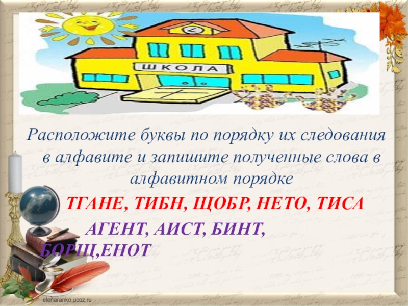 Слайд 3Расположите буквы по порядку их следования в алфавите и запишите полученные