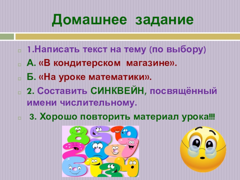 2. Составить СИНКВЕЙН, посвящённый имени числительному.