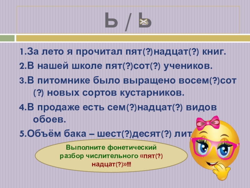 Выполните фонетический разбор числительного «пят(?)надцат(?)»!!!