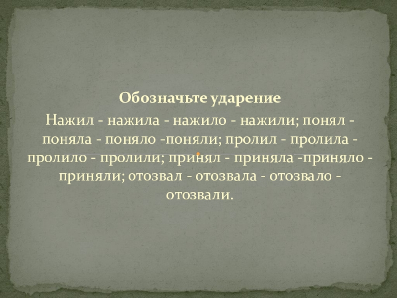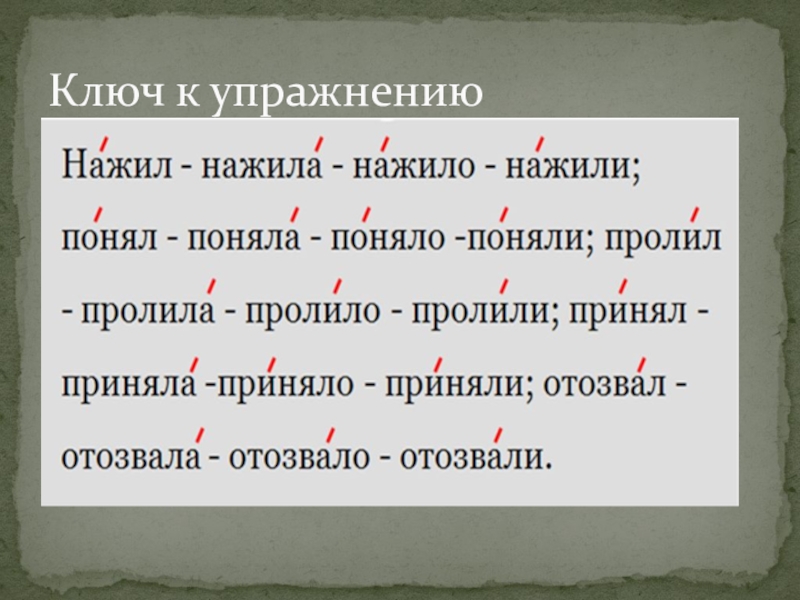 - поняло -поняли; пролил - пролила - пролило - пролили; принял - приняла -приняло - приняли; отозвал - отозвала - отозвало - отозвали.