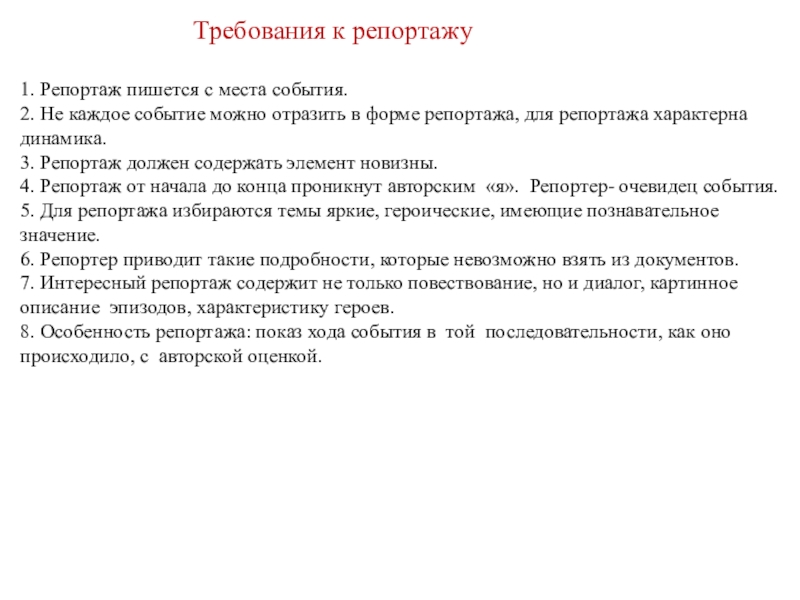 Требования к репортажу