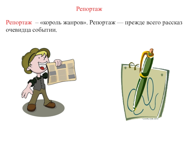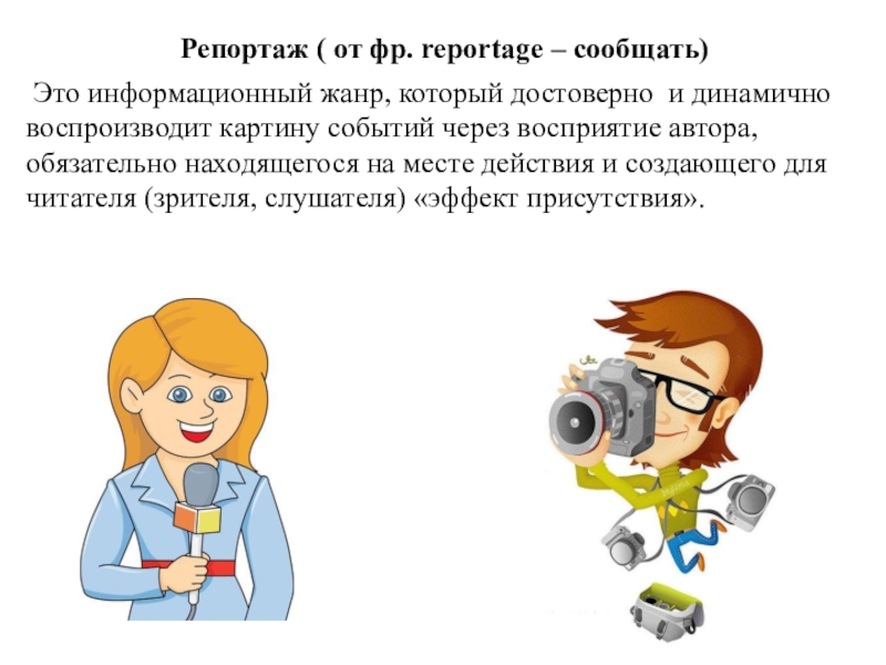 Слайд 7Репортаж ( от фр. reportage – сообщать)