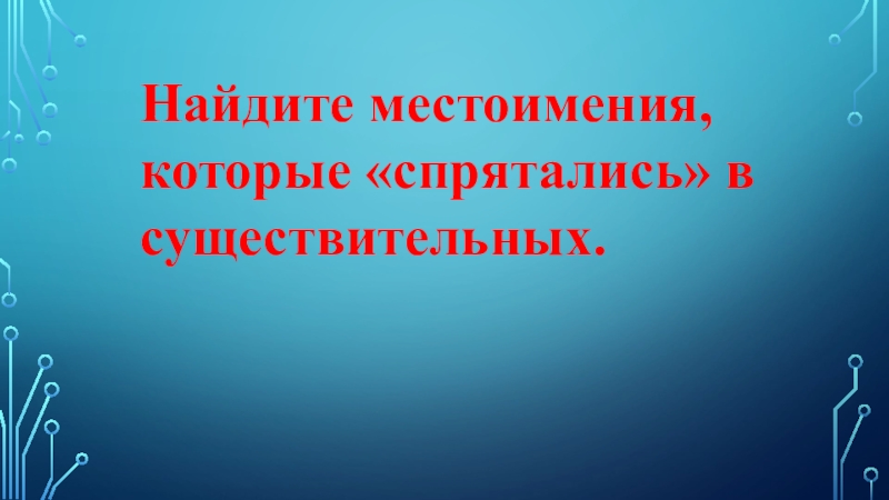 Слайд 2Найдите местоимения, которые «спрятались» в существительных.