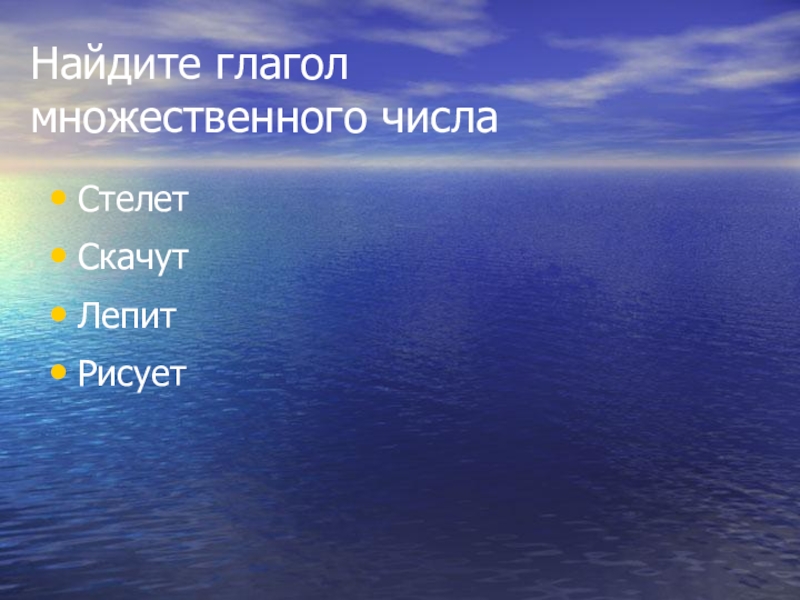 Найдите глагол множественного числаСтелетСкачутЛепитРисует