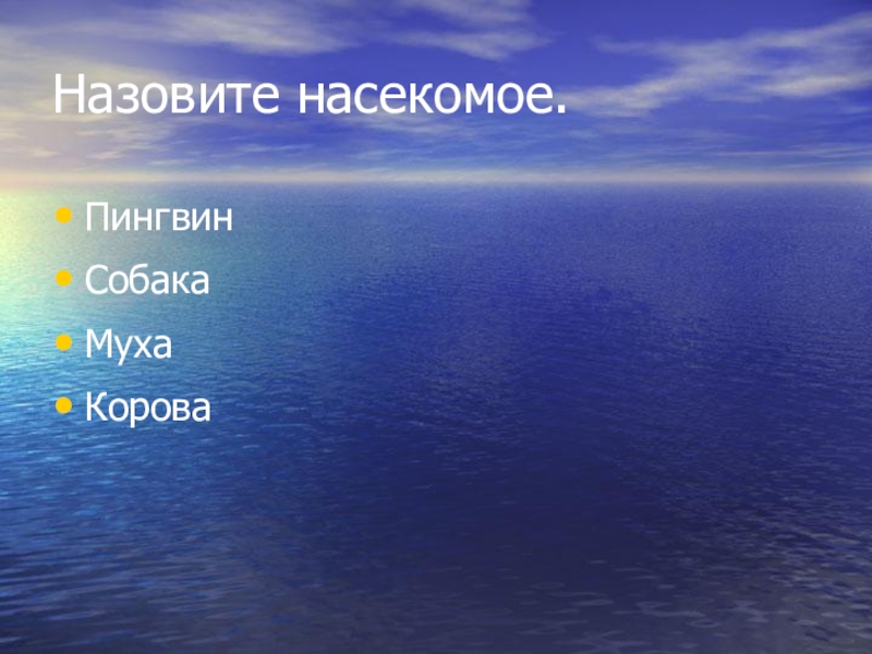 Назовите насекомое.ПингвинСобакаМухаКорова