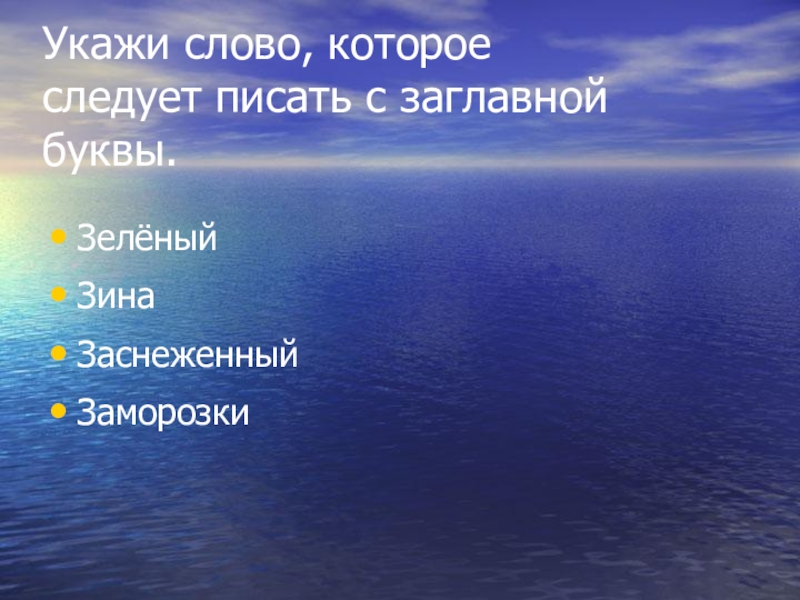 Слайд 6Укажи слово, которое следует писать с заглавной буквы.