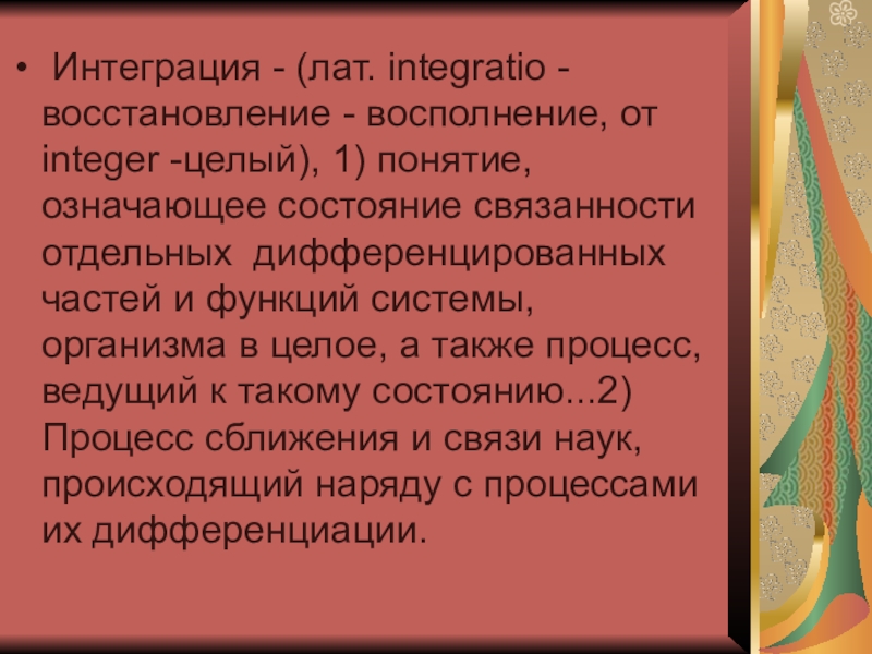 Слайд 4 Интеграция - (лат. integratio - восстановление - восполнение, от integer