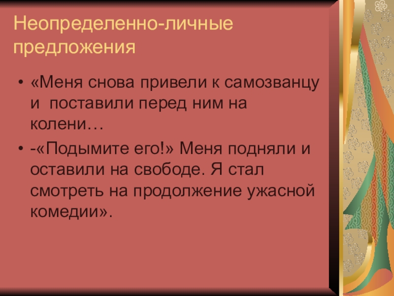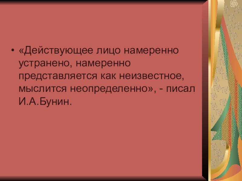 «Действующее лицо намеренно устранено, намеренно представляется как неизвестное, мыслится неопределенно», -