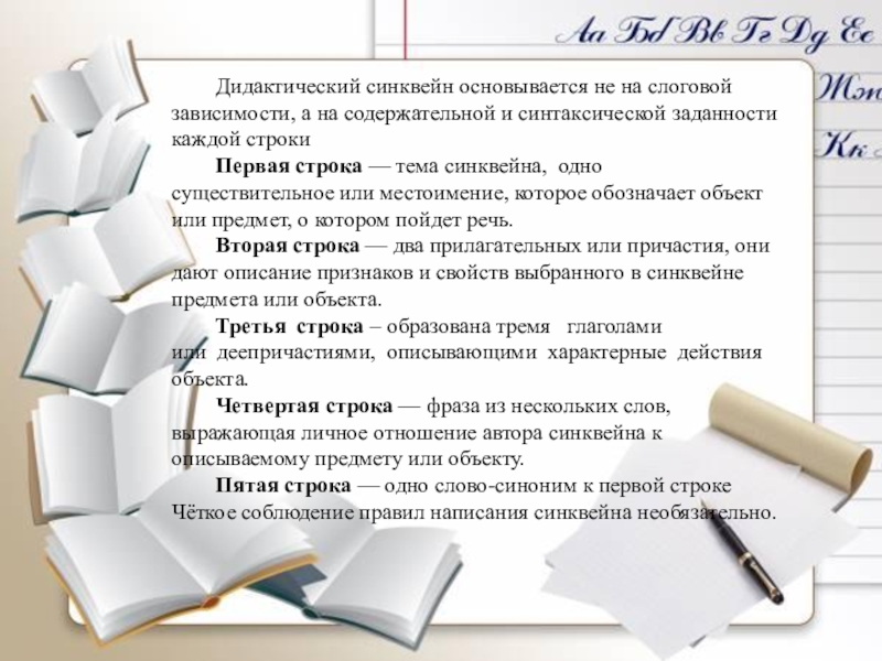 Слайд 6 Дидактический синквейн основывается не на слоговой зависимости, а на содержательной и