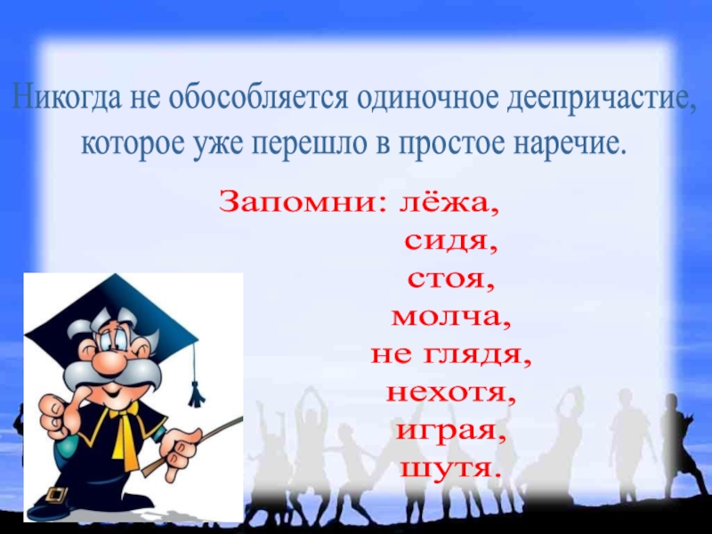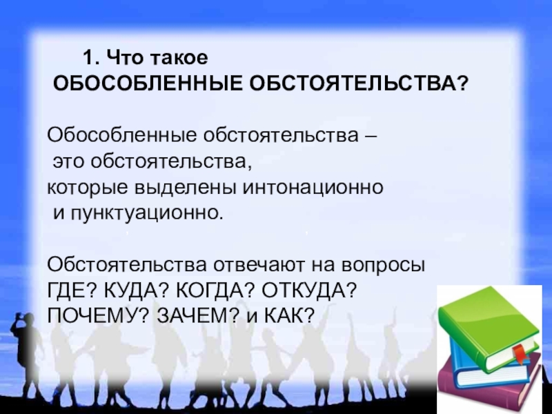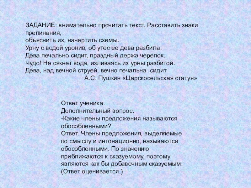 Ответ. Члены предложения, выделяемые по смыслу и интонационно, называются обособленными. По значению приближаются к сказуемому, поэтому являются как бы добавочным сказуемым. (Ответ оценивается.)