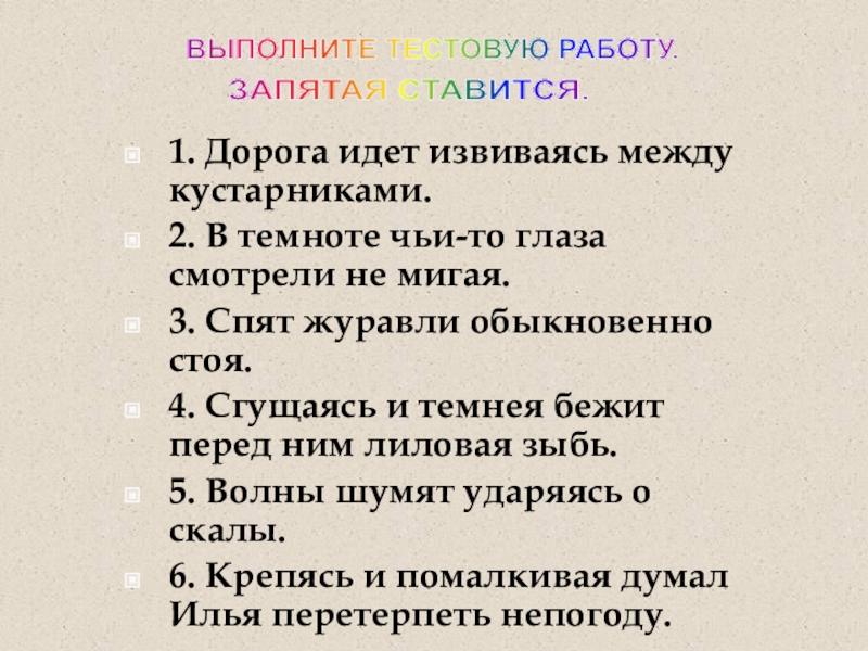 ВЫПОЛНИТЕ ТЕСТОВУЮ РАБОТУ.