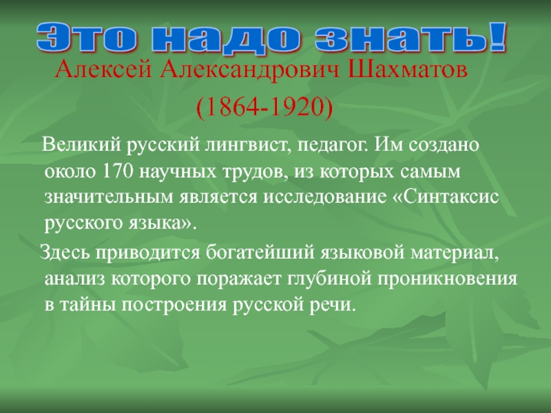 Это надо знать!