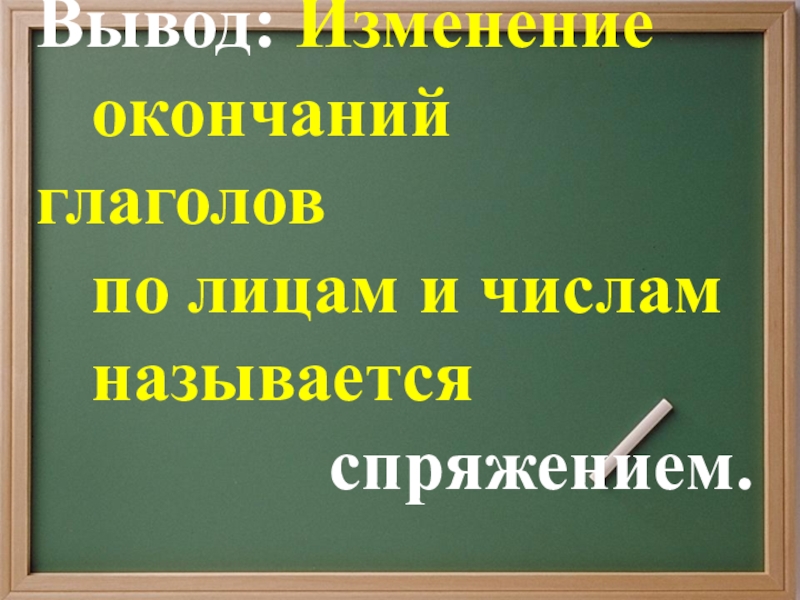 Вывод: Изменение  окончаний глаголов  по лицам и числам  называется