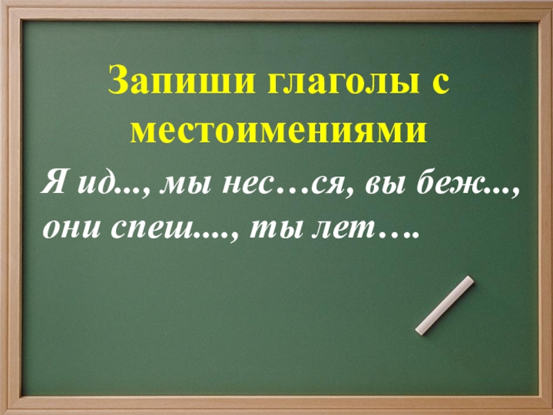 Я ид..., мы нес…ся, вы беж..., они спеш...., ты лет…. Запиши глаголы с местоимениями