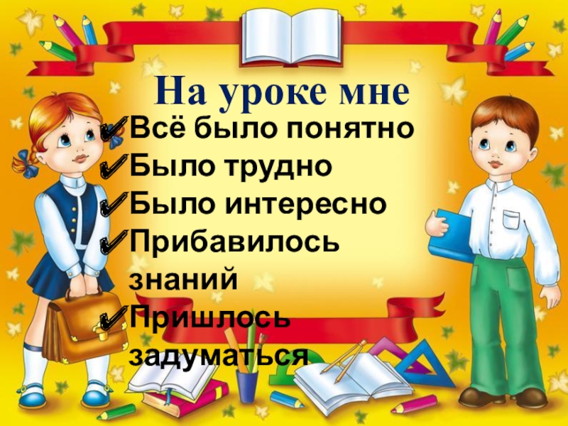 На уроке мнеВсё было понятноБыло трудноБыло интересноПрибавилось знанийПришлось задуматься