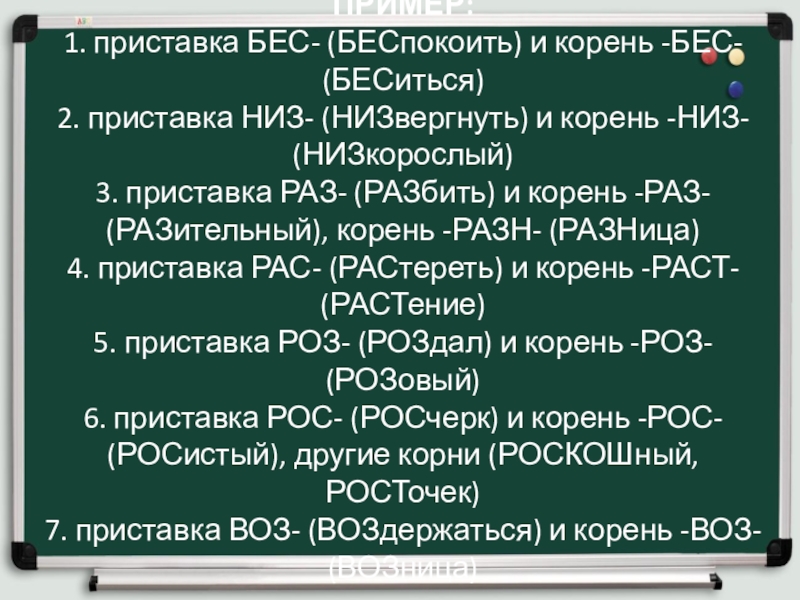 6. приставка РОС- (РОСчерк) и корень -РОС- (РОСистый), другие корни (РОСКОШный, РОСТочек)