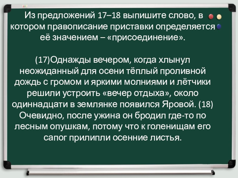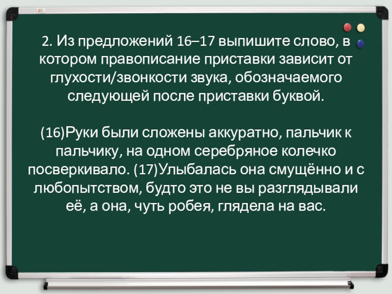 Слайд 342. Из предложений 16–17 выпишите слово, в котором правописание приставки зависит