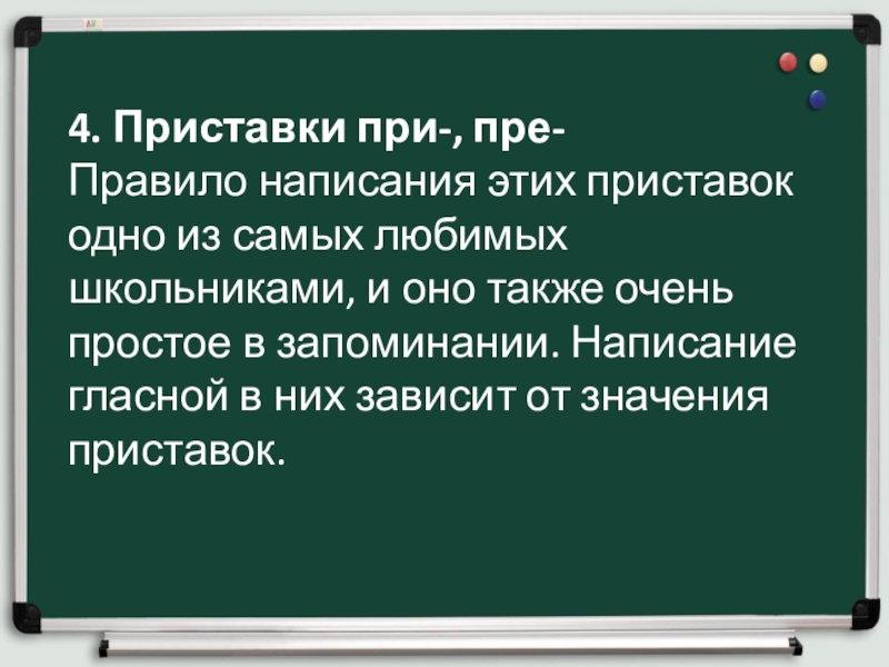 и оно также очень простое в запоминании. Написание гласной в них зависит от значения приставок.