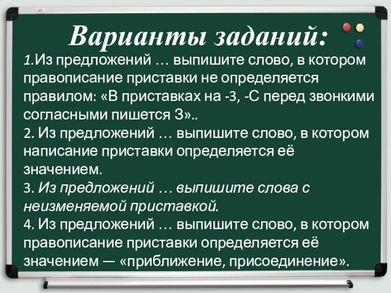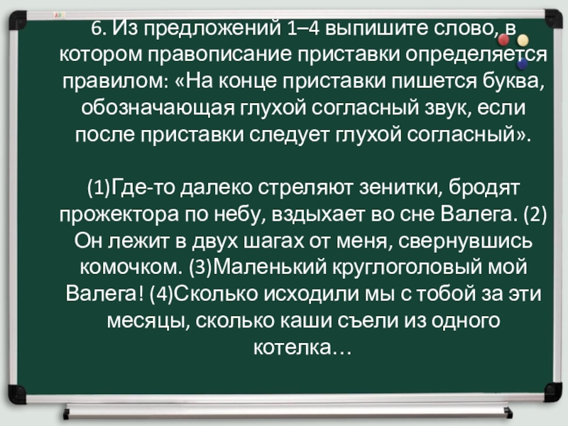 Слайд 366. Из предложений 1–4 выпишите слово, в котором правописание приставки определяется