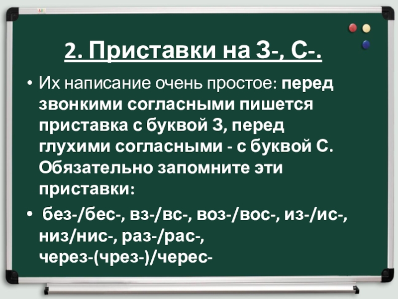 с буквой З, перед глухими согласными - с буквой С. Обязательно запомните эти приставки: