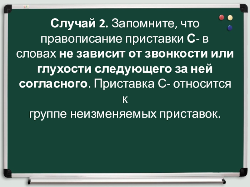 Слайд 10Случай 2. Запомните, что правописание приставки С- в словах не зависит от звонкости или глухости следующего за