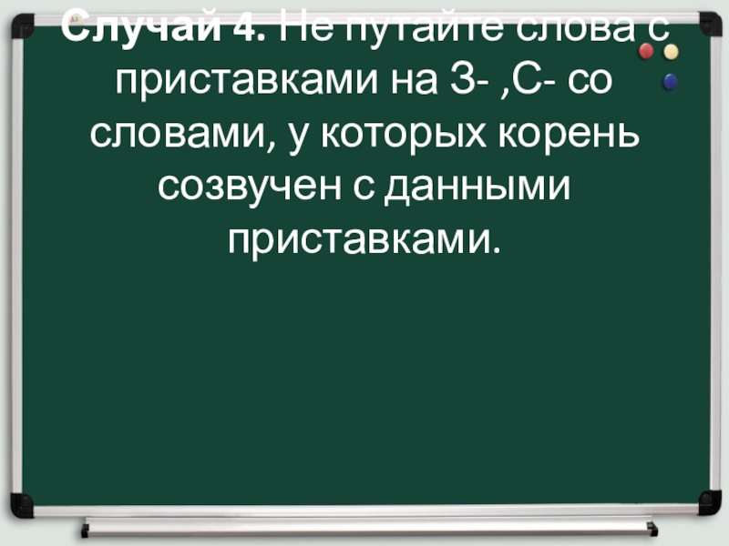 Слайд 13Случай 4. Не путайте слова с приставками на З- ,С- со словами,