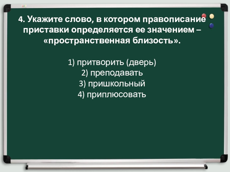Слайд 284. Укажите слово, в котором правописание приставки определяется ее значением – «пространственная