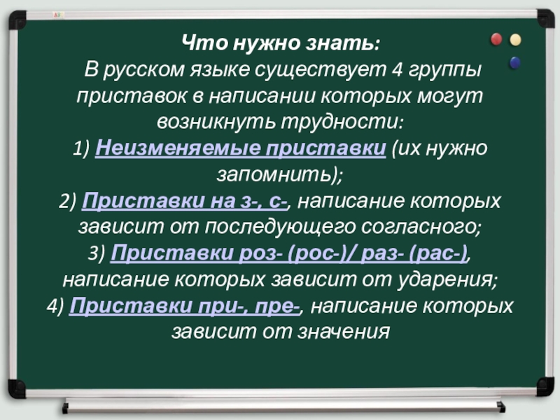 В русском языке существует 4 группы приставок в написании которых могут возникнуть
