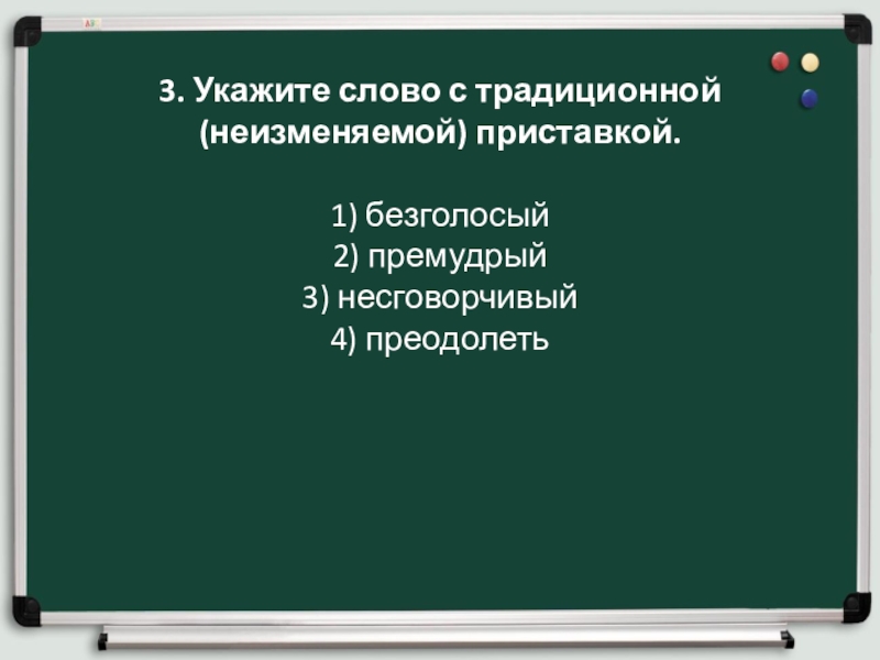 Слайд 273. Укажите слово с традиционной (неизменяемой) приставкой.