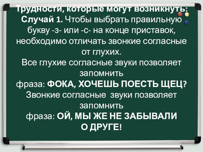 Все глухие согласные звуки позволяет запомнить фраза: ФОКА, ХОЧЕШЬ ПОЕСТЬ ЩЕЦ?