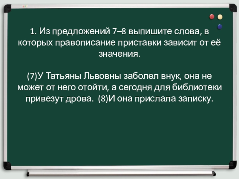 Слайд 331. Из предложений 7–8 выпишите слова, в которых правописание приставки зависит
