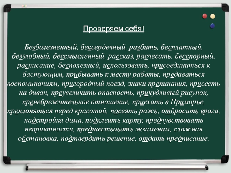 Безболезненный, бессердечный, разбить, бесплатный, беззлобный, бессмысленный, рассказ, расчесать, бесспорный, расписание,