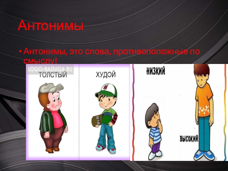 АнтонимыАнтонимы, это слова, противоположные по смыслу!